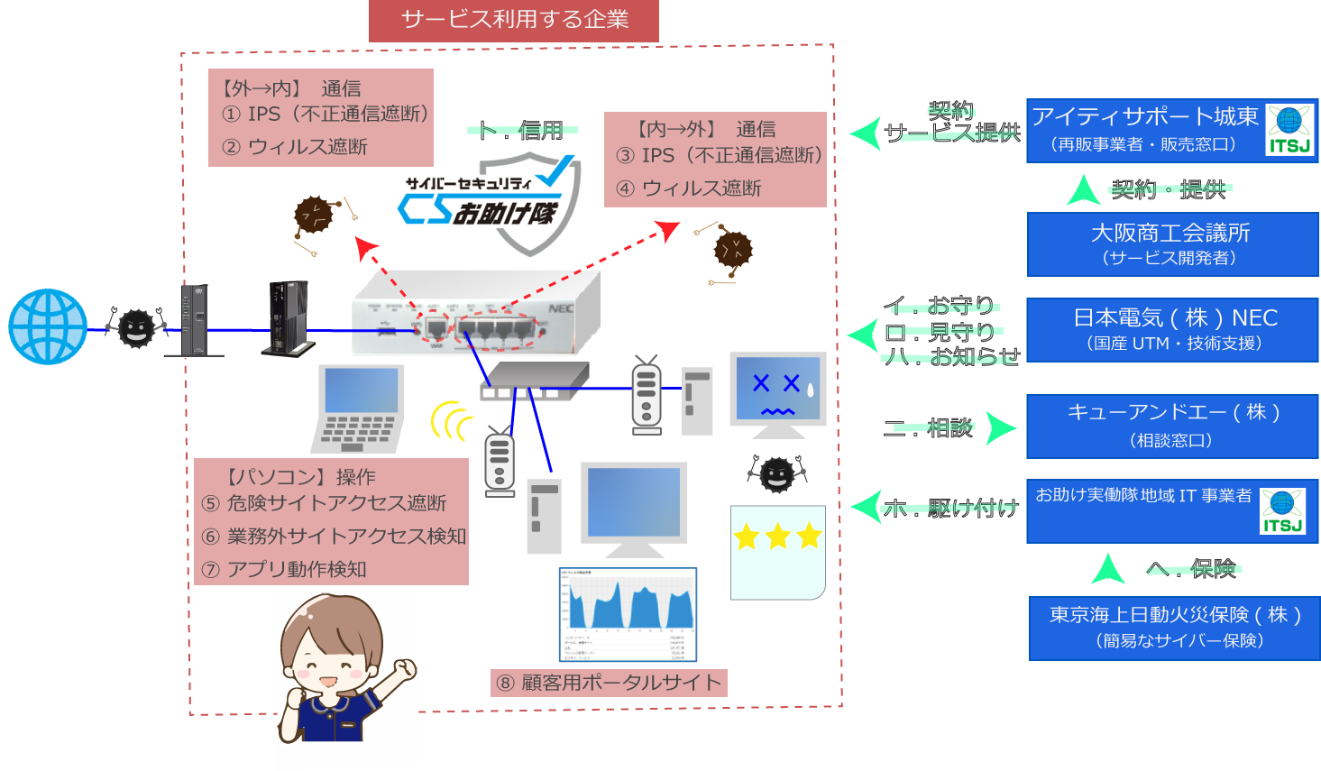 ![]() ★さらに詳しい内容は、こちらの「サイバーセキュリティお助け隊サービス」専用ページをご覧ください。 |